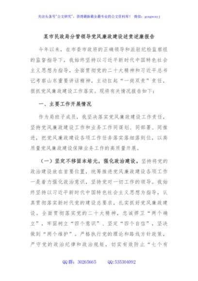 / 某市民政局分管领导党风廉政建设述责述廉报告