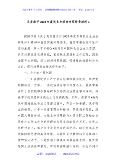 / 县委班子2024年度民主生活会对照检查材料2