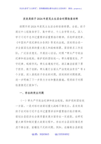 / 发改局班子2024年度民主生活会对照检查材料