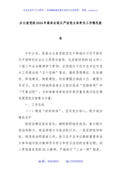 / 办公室党组2024年落实全面从严治党主体责任工作情况报告