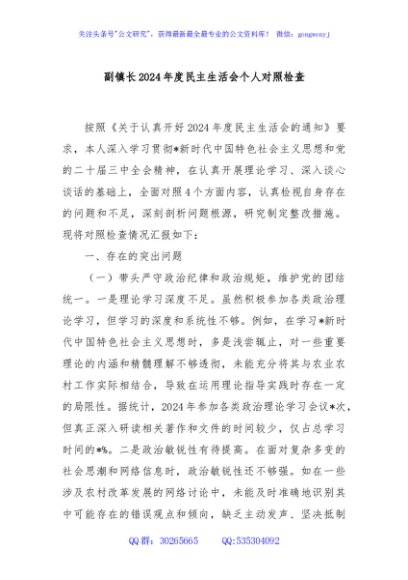/ 副镇长2024年度民主生活会个人对照检查
