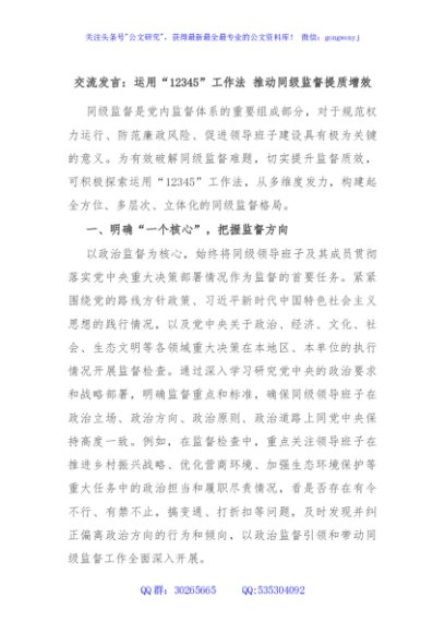 / 交流发言:运用“12345”工作法 推动同级监督提质增效