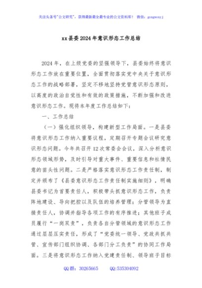 / xx县委2024年意识形态工作总结