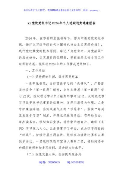 / xx党校党组书记2024年个人述职述责述廉报告
