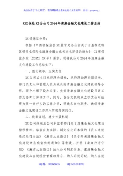 / XXX保险XX分公司2024年清廉金融文化建设工作总结