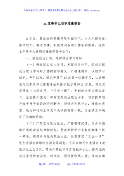 / xx党委书记述职述廉报告