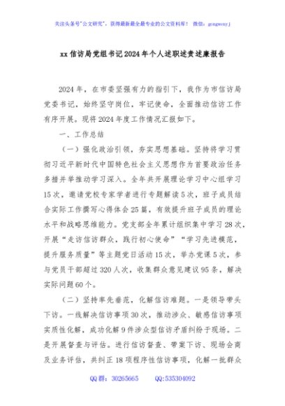/ xx信访局党组书记2024年个人述职述责述廉报告