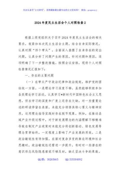 / 2024年度民主生活会个人对照检查2