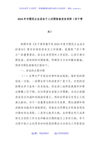 / 2024年专题民主生活会个人对照检查发言材料(四个带头)