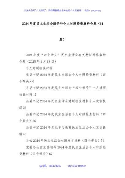 / (61篇)2024年度民主生活会班子和个人对照检查材料合集