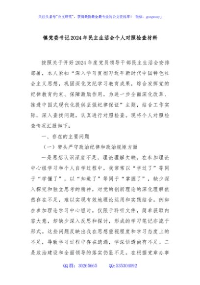 / 镇党委书记2024年民主生活会个人对照检查材料