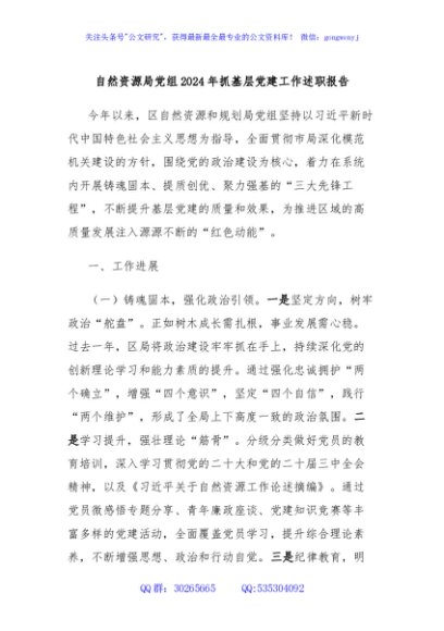 / 自然资源局党组2024年抓基层党建工作述职报告