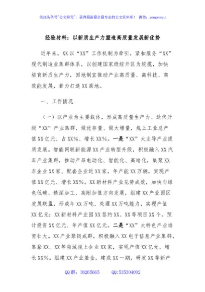 / 经验材料:以新质生产力塑造高质量发展新优势