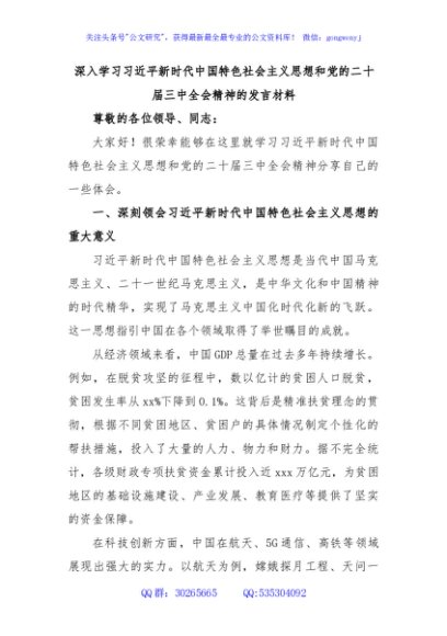 / 深入学习习近平新时代中国特色社会主义思想和党的二十届三中全会精神的发言材料