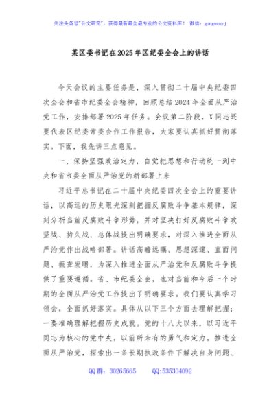 / 某区委书记在2025年区纪委全会上的讲话