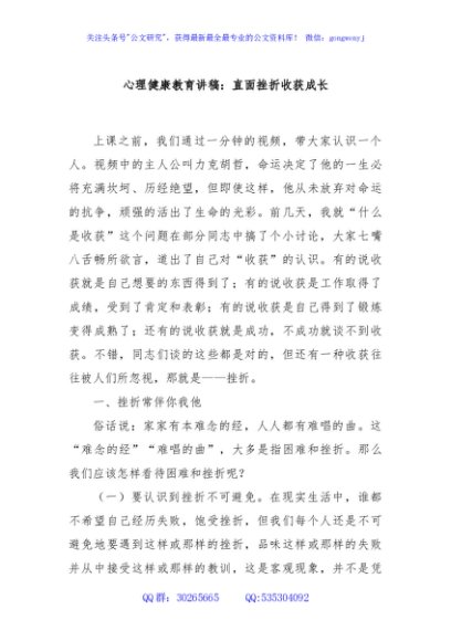 / 心理健康教育讲稿:直面挫折收获成长
