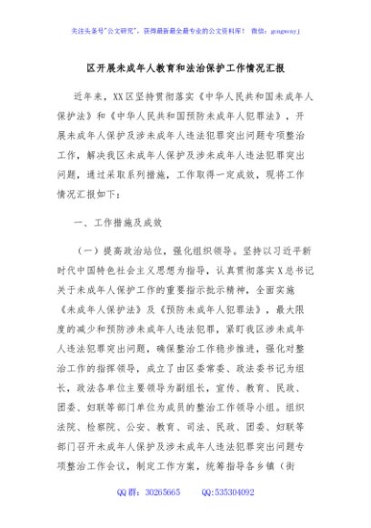 / 区开展未成年人教育和法治保护工作情况汇报