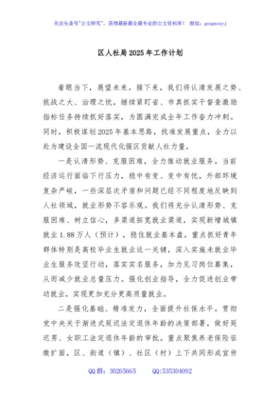 / 区人社局2025年工作计划