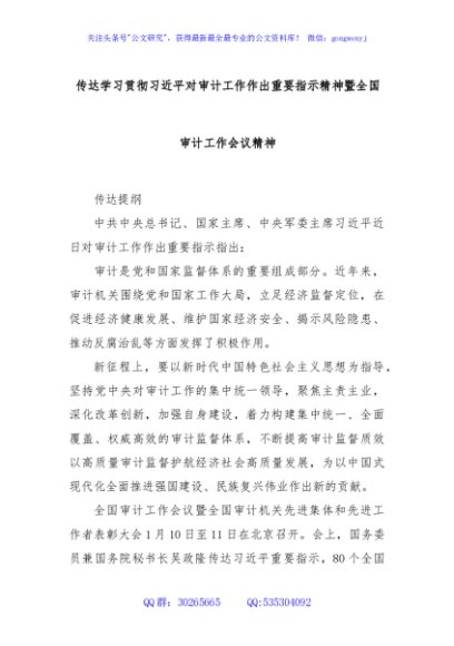 / 传达学习贯彻习近平对审计工作作出重要指示精神暨全国审计工作会议精神