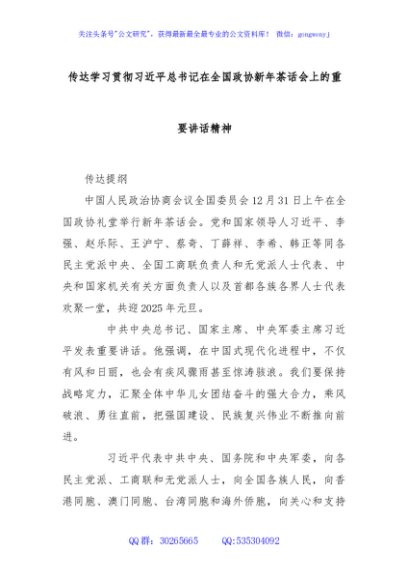 传达学习贯彻习近平总书记二〇二五年新年贺词精神