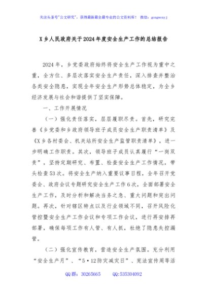 / X乡人民政府关于2024年度安全生产工作的总结报告