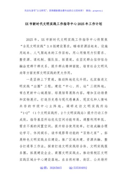 / XX市新时代文明实践工作指导中心2025年工作计划