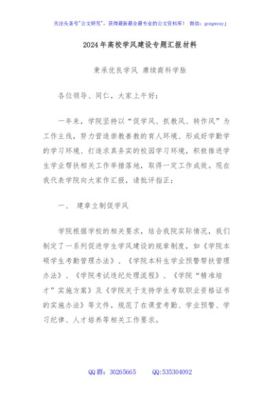 / 2024年高校学风建设专题汇报材料