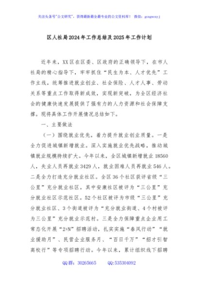 / 区人社局2024年工作总结及2025年工作计划