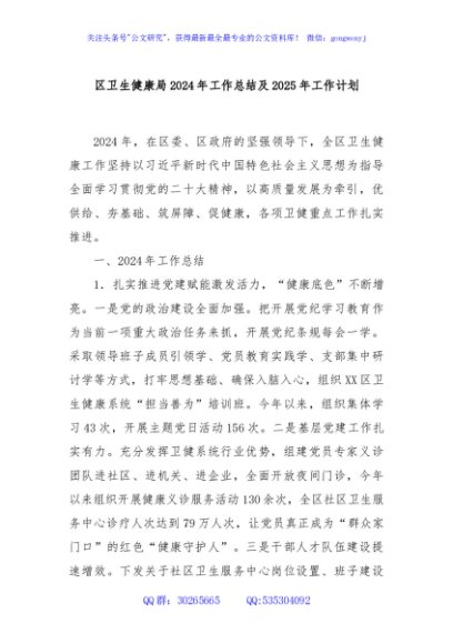 / 区卫生健康局2024年工作总结及2025年工作计划