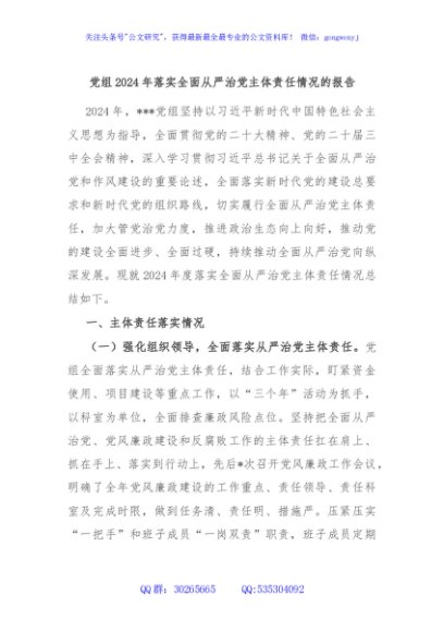 / 党组2024年落实全面从严治党主体责任情况的报告