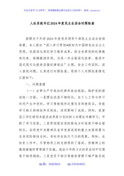 书记2024年民主生活会个人对照检查材料(四个带头)