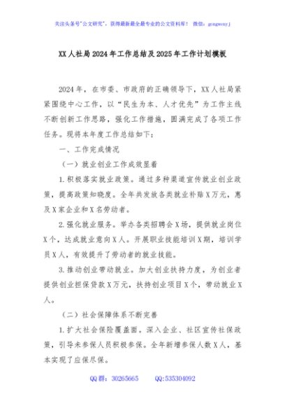 / XX人社局2024年工作总结及2025年工作计划模板