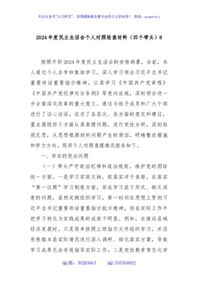 / 2024年度民主生活会个人对照检查材料(四个带头)8