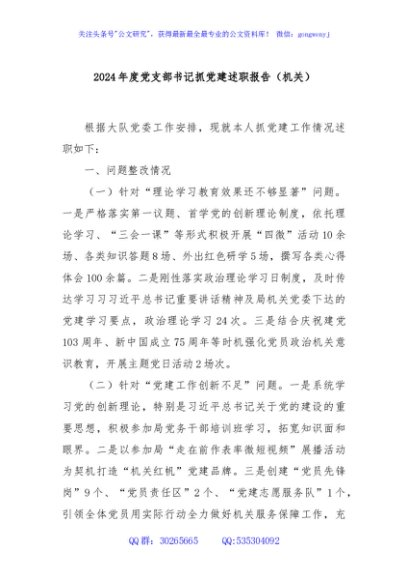 / 2024年度党支部书记抓党建述职报告(机关)