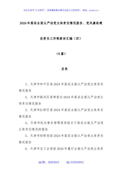 / (6篇)2024年落实全面从严治党主体责任情况报告、党风廉政建设责任工作制素材汇编(四)