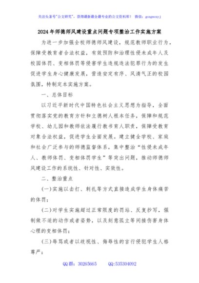/ 2024年师德师风建设重点问题专项整治工作实施方案