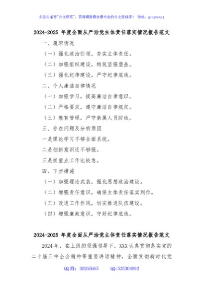 / 2024-2025 年度全面从严治党主体责任落实情况报告范文 (2)