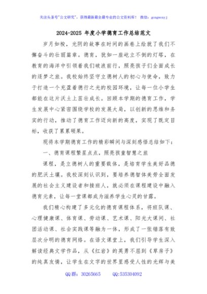 / 2024-2025 年度小学德育工作总结范文 (2)