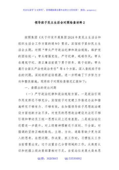 / 领导班子民主生活会对照检查材料2