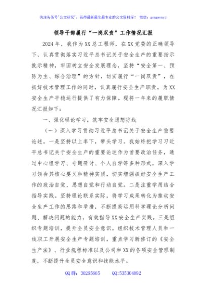 / 领导干部履行“一岗双责”工作情况汇报