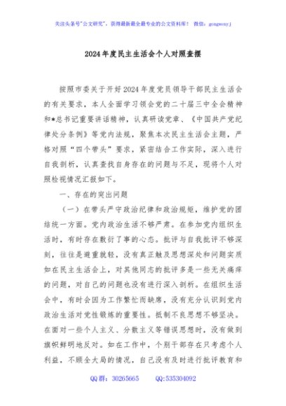 2024年度xx镇党委组织生活会个人对照检查材料(镇党委副书记)