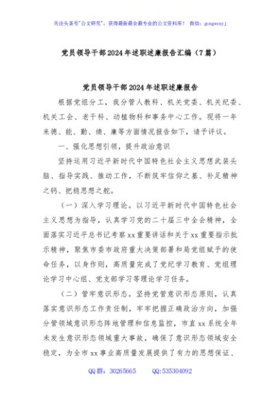 / (7篇)党员领导干部2024年述职述廉报告汇编