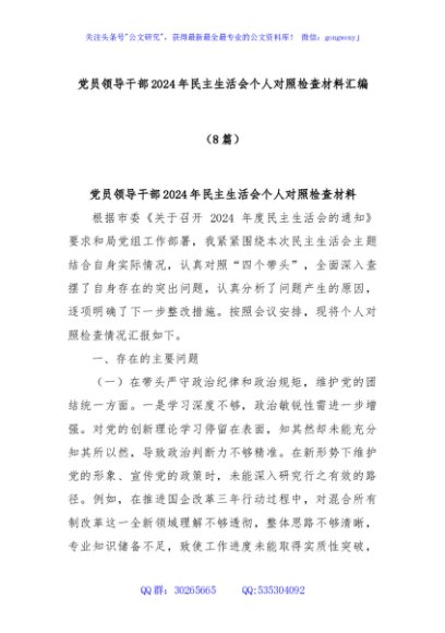 / (8篇)党员领导干部2024年民主生活会个人对照检查材料汇编
