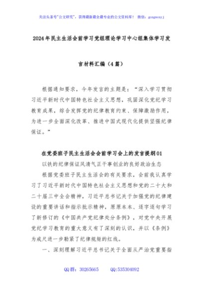 / (4篇)2024年民主生活会前学习党组理论学习中心组集体学习发言材料汇编