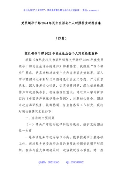 / (13篇)党员领导干部2024年民主生活会个人对照检查材料合集