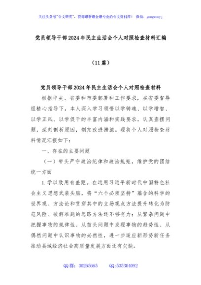 / (11篇)党员领导干部2024年民主生活会个人对照检查材料汇编