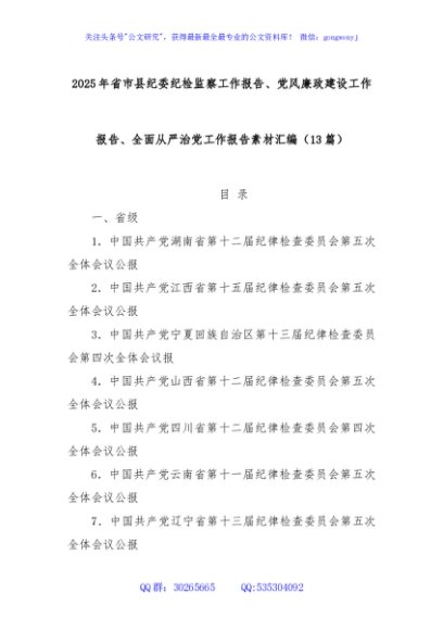 / (13篇)2025年省市县纪委纪检监察工作报告、党风廉政建设工作报告、全面从严治党工作报告素材汇编