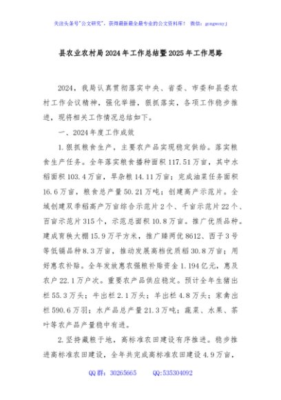 / 县农业农村局2024年工作总结暨2025年工作思路