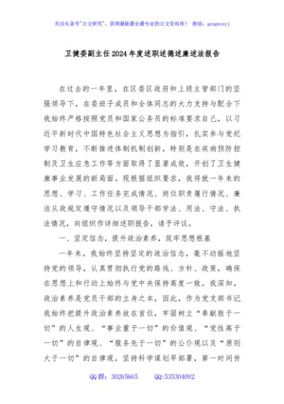 / 卫健委副主任2024年度述职述德述廉述法报告