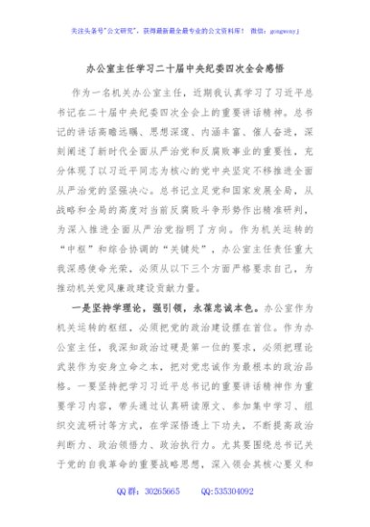 / 办公室主任学习二十届中央纪委四次全会感悟
